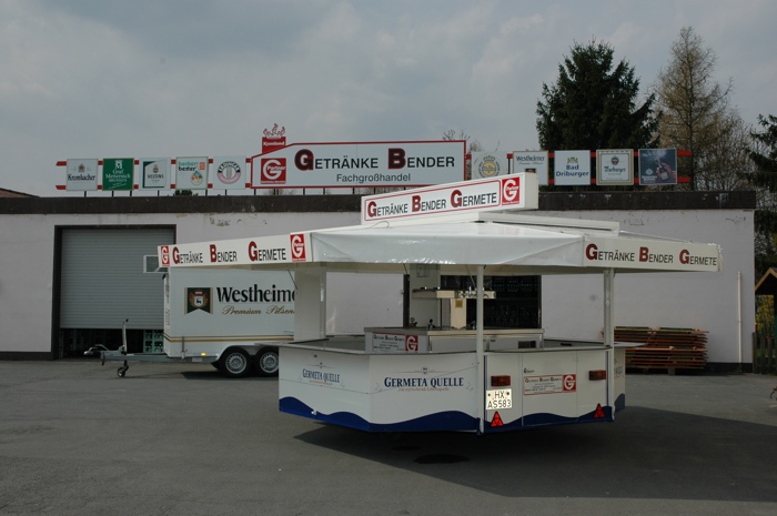 - Kühlwagen, Zapfanlagen, Theken, Stehtische, Bierzeltgarnituren, Pavillons, Verkaufswagen, Zelt, Gläser usw.